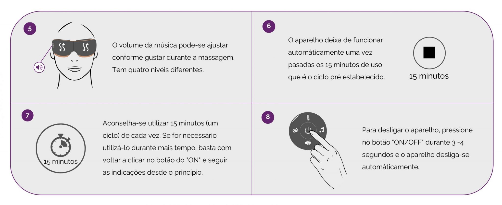 É aconselhável usar o massageador somente 15 minutos (um ciclo) de cada vez. O aparelho desliga-se automáticamente pasado esse tempo.